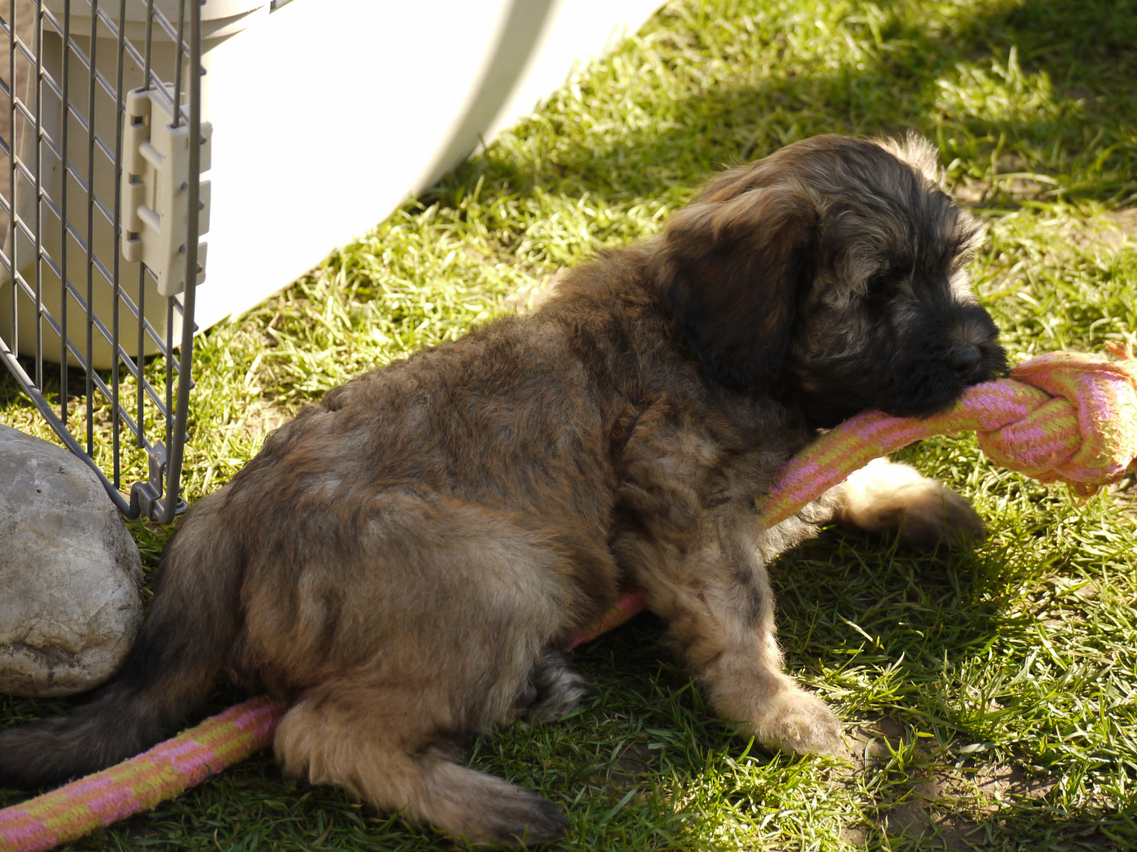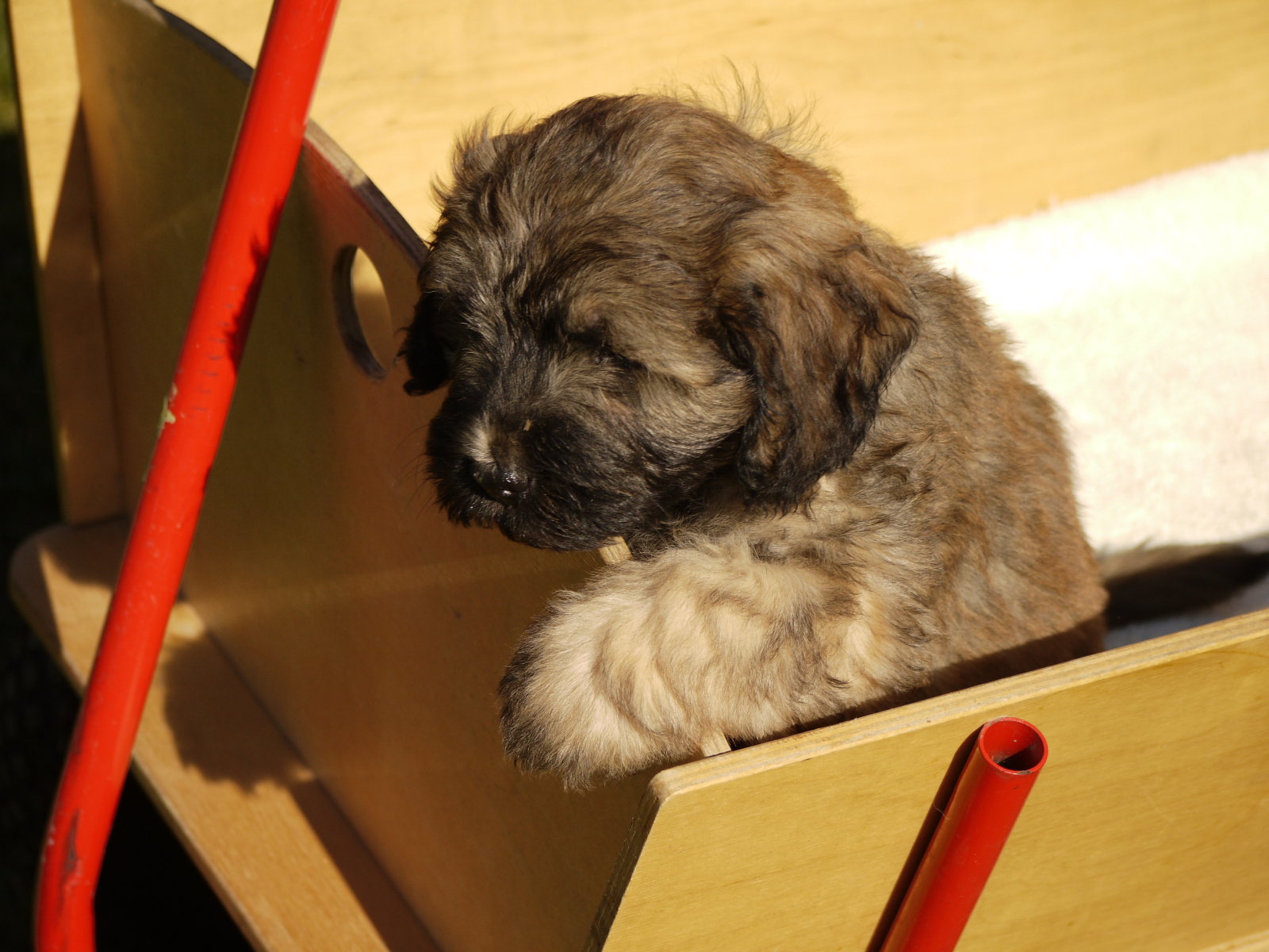Erschöpft vom Spielen, mit vollem Bäuchlein fallen sie manchmal einfach müde um und schlafen zusammengekuschelt in kleinen Gruppen, inzwischen auch zu zweit oder allein in einer gemütlichen Ecke. Die Welpen unternehmungslustig, schlafend oder auch nur so einfach vor uns zu sehen: da braucht`s kein Fernsehen, nichts….anderes ! 🙂